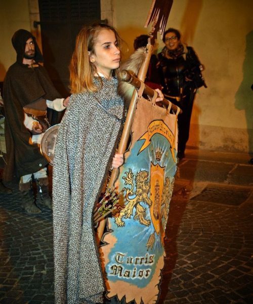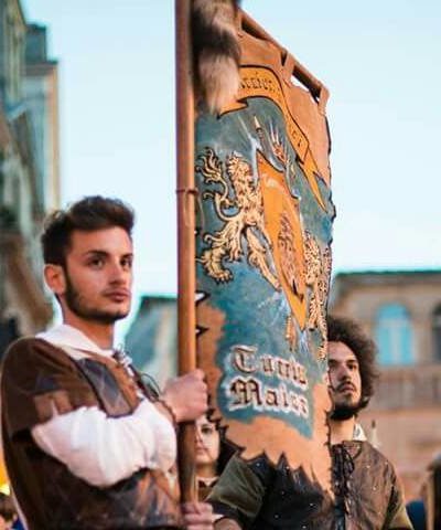 Nel medioevo l’alfiere aveva il compito di portare il vessillo in battaglia e proteggerlo ad ogni costo.